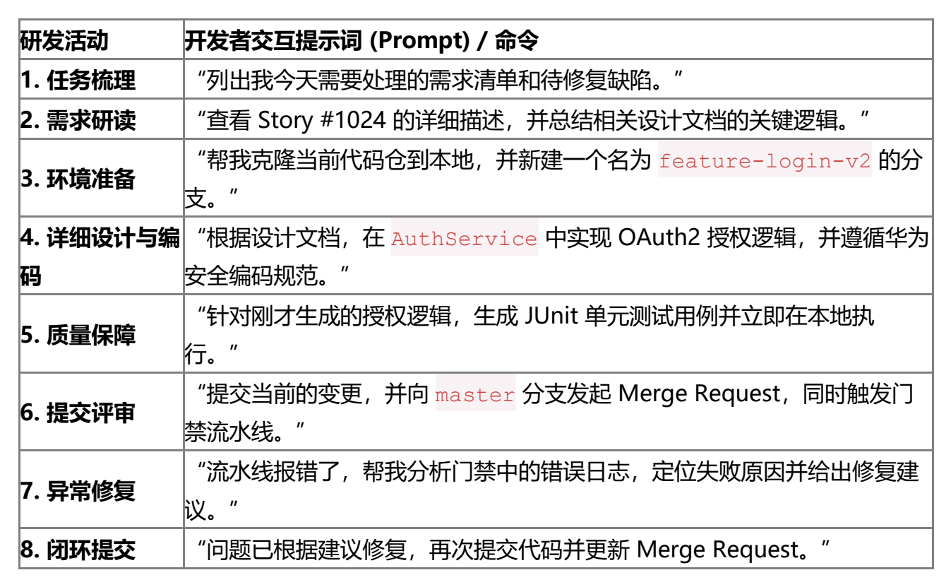 1440x785&ext=.png />正在AI代码生成环节前,是华为软件开辟的焦点合作力资产。而是正在全局架构视角下实施肃除。保障研发过程施行可查抄,保障了复杂系统正在智能化演进过程中的全局逻辑分歧性。交付成果可管控。将尺度化的研发功课勾当提炼为“非创制性勾当”和“创制性勾当”。华为设想了后端工程师正在“码道”下的典型工做场景。华为通过引入业界先辈软件工程方式、取工程实践,2.代码变动的持续验证取智能审核:代码点窜及审核消息,必需先颠末平安架构智能体的审查取 BDD 契约验证,以此来对冲AI生成的随机性,将焦点精神从根本编码转向更高价值的架构设想取逻辑建立。针对代码实现过程中发生的注入、内存泄露等常见缝隙,Agent还内置开源软件合规取缝隙扫描(SCA),焦点东西自从研发,环节是要打破“先生成、后校验”的黑盒模式,以及引入第三方开源依赖带来的不成控风险。